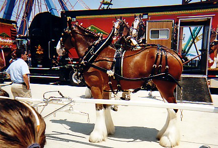 travel truck is seen here with the fancy logo and pictures of the Clydesdales,